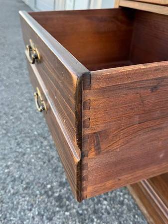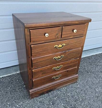 6-10) Ethan Allen 3-Drawer Antique Tavern Pine Dresser with Deep Lower Drawers: Sturdy and in great condition, with a little bit of wear. Drawers are dovetailed and slide smoothly. 24" wide x 18.25" deep x 30.25" tall. $235