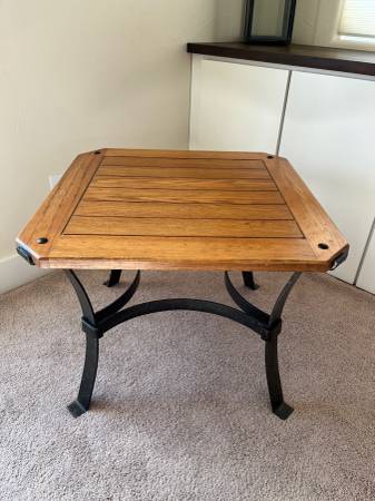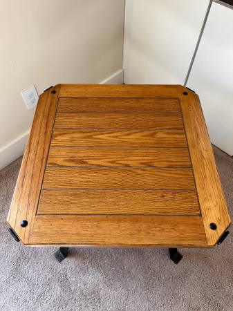 End table with solid oak top and metal legs. 28"x28" top and 21.75" tall. Great condition.