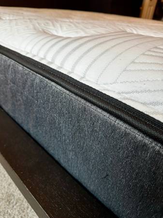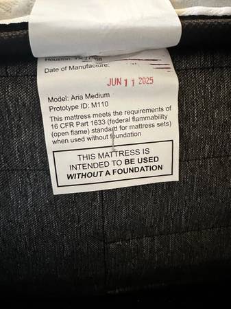 Aria Queen medium firm mattress used for 3 months and has had a mattress protector on it the entire time! It’s a high quality mattress and it retails for $900. It’s been a bit too firm for me. It’s “broken in” so it will remain exactly at this firmness. Very comfy if you like mattresses on the medium firm side!