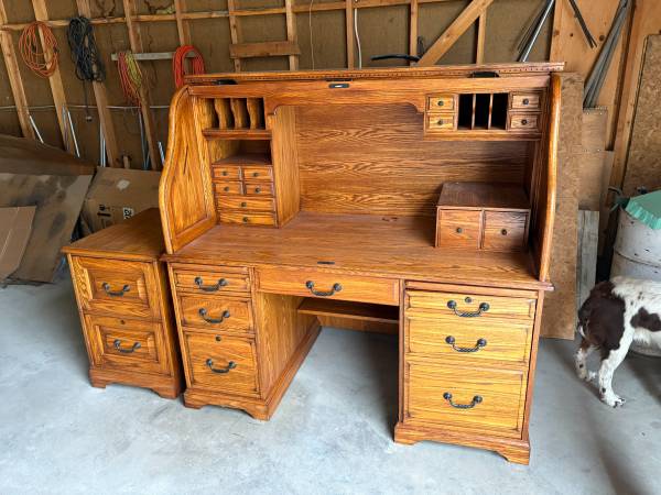 Winners Only Roll Top Desk. Like New. Comes with File Cabinet.