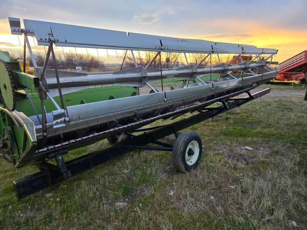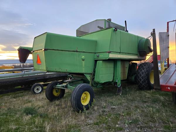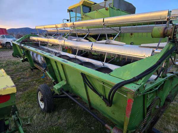 Nice older combine. Runs great, cuts well. Cab with A/C but not working. Selling with choice of 220 or 222 header. No cart included. Cut about 50 acres this fall with no issues. $6500/obo would consider trade of equipment or trailers. Please call Trevor at show contact info