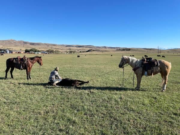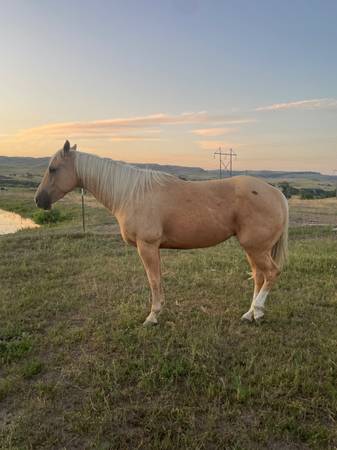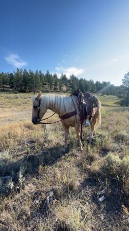 Klondike is a gentle gelding that has been used all over the ranch. He rides around nice and with purpose ready for a job whenever. He’s the type that most people will get along with, he’s easy going but has enough life to enjoy doing anything on him. He picks up his correct leads, trots out smooth, will cover country all day. Cross creeks, ditches, downfall, hell go through brush etc. Not much seems to bother this guy.