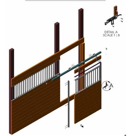 New Aluminum Stall Horse Door + Hardware Kit System; $2000. Five horse door hardware kits with 4 ft. grills, two sides with lags/wash, slide rail, slide stops, double truck trolleys, spring-back latch and stay roller complete with installation instructions. Lumber not included. Also, two swinging aluminum feed doors with double latch; and 2 drop-down doors with double latch and hardware. Made in USA by ARC Integrated Systems.