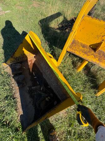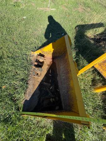 Yellow Loader with bucket and pump $250 Used - Fair 31 5/8 between mounting pins, bucket measures 42.5" wide, unknown working condition