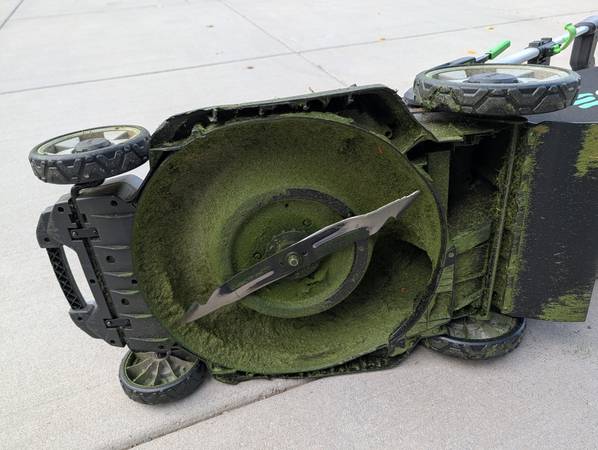 I won't buy the new one until spring, and so that I don't have to store this over winter, I'm selling it for a low price, and plus there's a few little things here and there that make it look and feel "used." Does not come with the batteries because I will use those for the new mower.