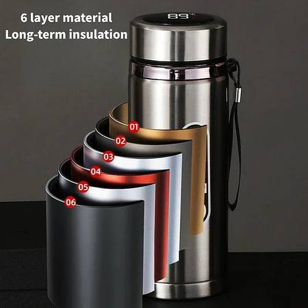 1Liter AI Smart Thermos Bottle with Touch Screen LED Temperature Display Stainless Steel (Sus304) Tea Water Bottle Vacuum Flask Portable Cups