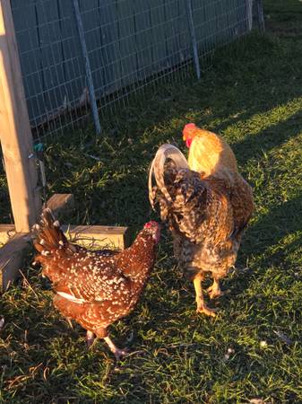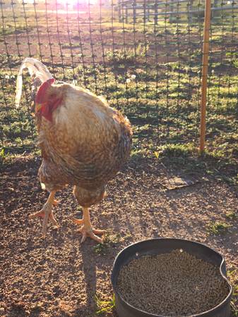 Four year old pure bred Bielefelder, a German breed known for their size and non-aggressive nature. "Dude" has a few battle scars from protecting his girls and has lost part of his comb due to frostbite, but he is dedicated to caring for hens in his care. He will make a great addition to any flock.