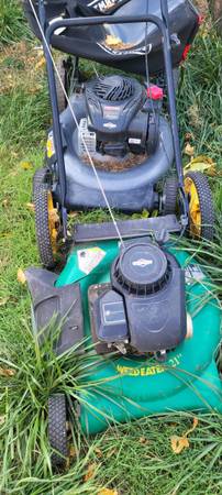 3 lawnmowers and fertilizer spreader. Mowers haven't been used for a couple years but ran good. 100 cash for all.