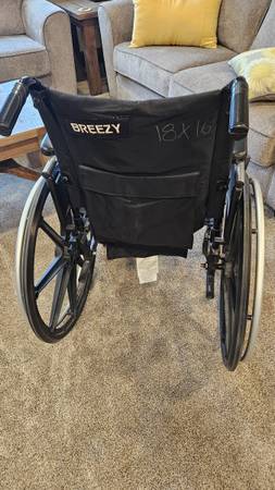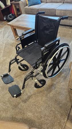 Youth or smaller size adult wheelchair in excellent condition ($60), with ROHO Mosaic cushion ($50) also in excellent condition. Wheelchair seat size is 18" x 16". Will sell each separately, but the combination works great!