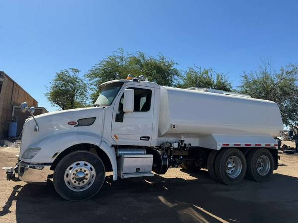Peterbilt 2018 579 Cummins X15 engine jake brake 3 stage Jake brake 10 speed manual Eaton Fuller Transmission 4000 gallons new steel Baffled tank, 2 1/2-inch Fast flow valve, pump 800 GPM 75PSI 2 front sprayers 2 side cannons and 2 rear sprayers air controlled from the interior of the cab 6 switch box, draft system 3 inch to suck water from pond ready to work no codes on truck been cheeked with a computer and has a new oil service with new filters!