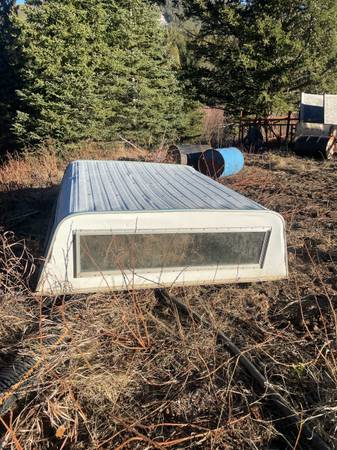 Aluminum pickup topper in great shape! all glass good, rear door latch for is tight. Length 78” width 72”
