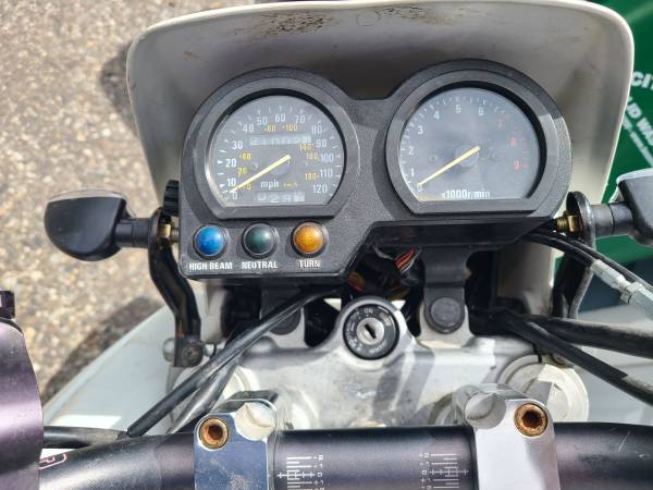 Tires are in decent shape. Comes with an extra rim with a tire installed, another swing arm, crankcase cover, and original mirrors. Also comes with shop manual.