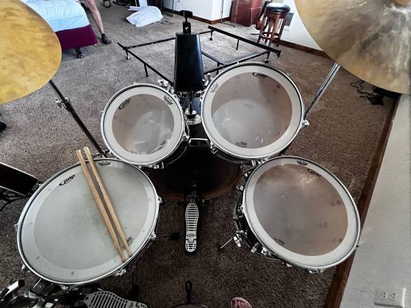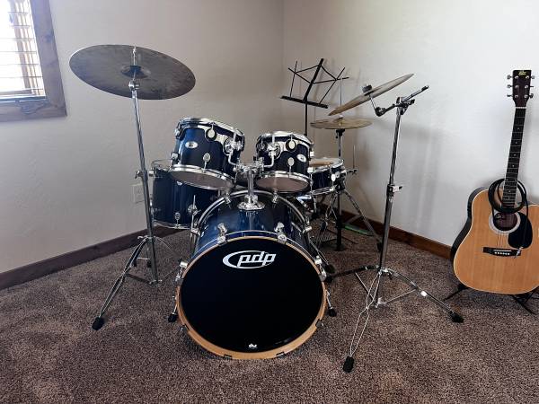 DW PDP Maple M5 Drum Kit Blue to Black Fade – Complete Setup w/ Wuhan Cymbals – $900 OBO NO TRADES PDP Maple M5 drums: 22” bass drum w/ petal 14” snare drum w/ stand and petal 10” + 12” rack toms...