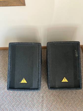 These Behringer Eurolive F1220 monitors are in good condition. Decent sound quality. Neutrik connectors. They handle 200 watts.