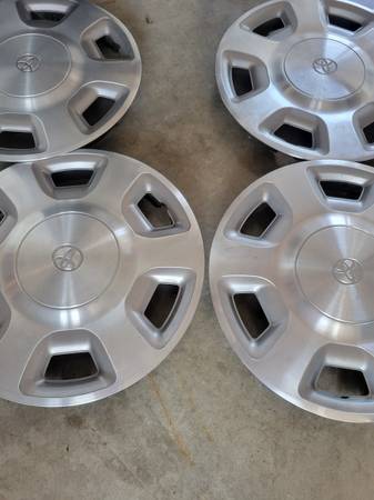 Chevy embossed center caps. 4 each new. $30. For 15".. 4 Lincoln 15" hubcaps $20.. 4 toyota 14" original style hubcaps $30.. miscellaneous others in single. 4 oh six 2 two three 9 five 7 seven