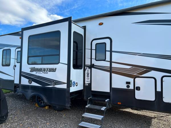 A 2020 Momentum toy hauler 36 feet. Good shape. Built in generator. 10 foot garage with double bunks that raise into ceiling One loft bed and big upper bedroom. Full bath and additional 1/2 bath in garage. Appliances just inspected at RV shop and in great shape. Roof inspected last year. Fueling station. 3 AC units.