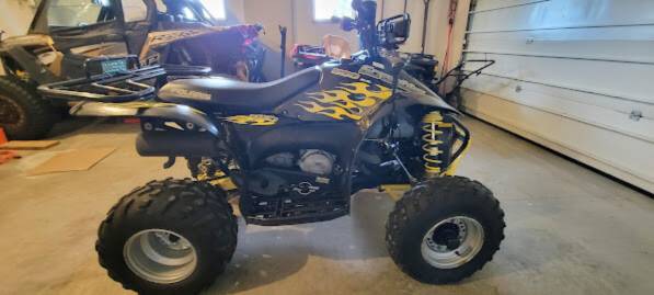 Here is a 2005 Polaris Scrambler 500 HO 4x4 ATV! This is a sport oriented ATV that strikes a nice balance of speed along with great handling and nimble size. It includes a front skid plate and rear rack!