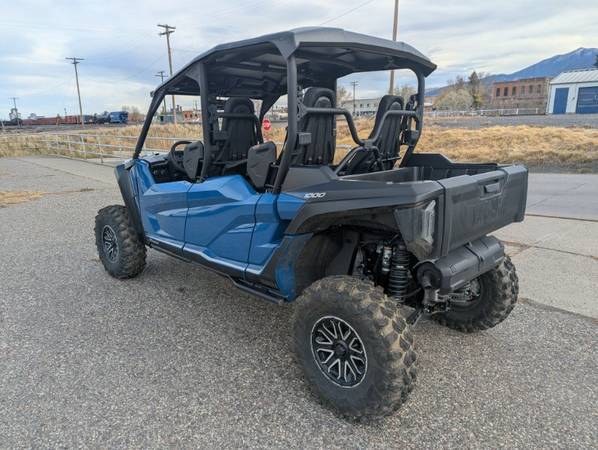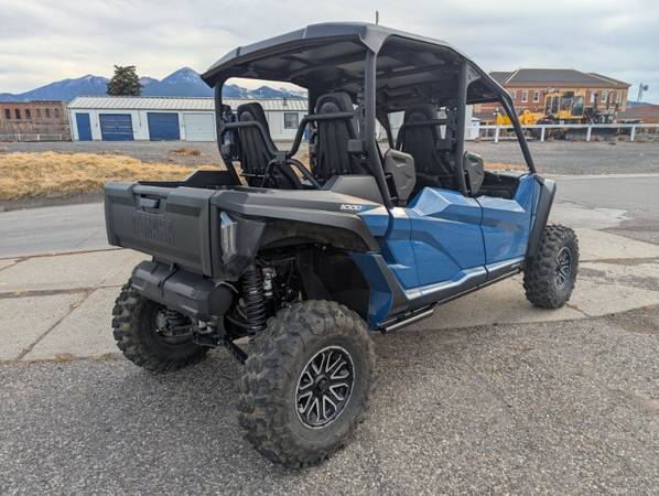 Only 40 miles on this like new 2025 Yamaha RMAX 4 Limited Edition model (dusty blue). 1000cc engine with EFI, ultramatic transmission with high and low range, push button 4x4 with DIF lock and turf mode, new adjustable power steering system, 30" tires, tilt/dump bed, Warn 4500lb winch, new stereo / navigation / mapping system, rear view mirror, drive mode switch, back up camera, electronic on-the-fly adjustable shocks, full color display meter. Yamaha Financing available. Prices listed are "out the door" Call or stop by Alpine Yamaha in Livingston