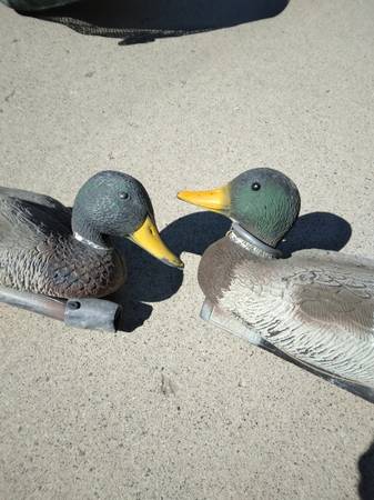 12 floating mallards. 10 drakes, 2 female. plus 3 goldeneye.With weights.