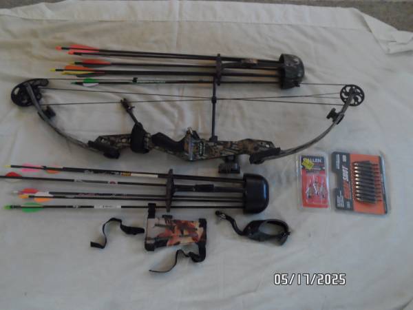 LEFT HAND high country HCA vibra-flex compound bow and accessories $125 cash for all. 29" draw length 70lb. draw weight