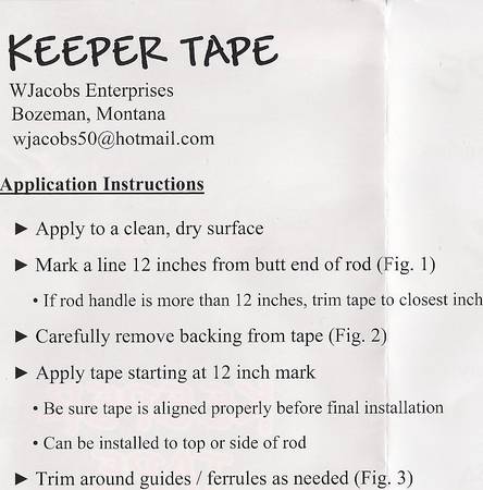 Measuring tape for rod or wade staff. Up to 36 inches. Wholesale lots @ $32.00 per dozen.