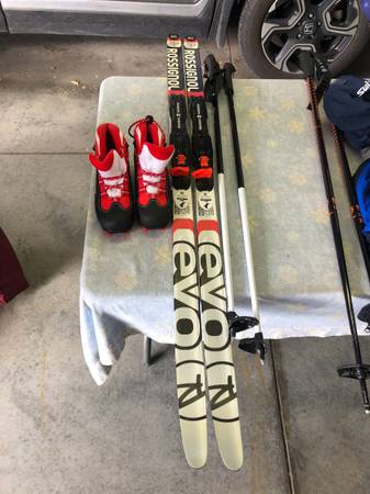 KIDS CROSS COUNTRY SKI SET: boots size 34 and skis size 130. $175 cash: 406-599-36 four five