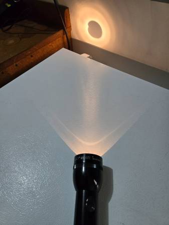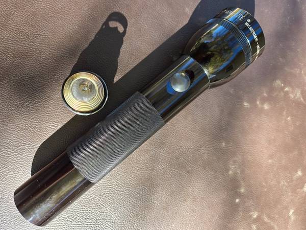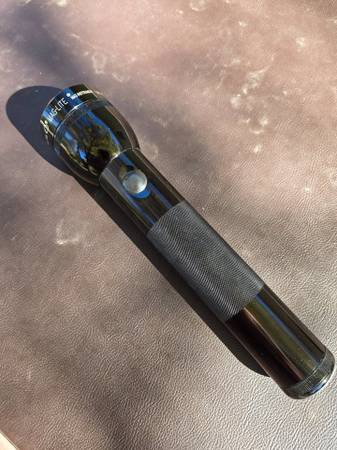 USED: The black Maglite 2 D flashlight has been tested and confirmed to be in working condition. It features a length of 10 inches and comes from the United States. This flashlight is perfect for outdoor enthusiasts, and it does not come with batteries included. Whether you need a flashlight for your next camping trip or for your home emergency kit, this Maglite flashlight is a great choice. Water Resistant. Includes spare bulb (stored in end-cap). Operating Time 5-10 Hours.