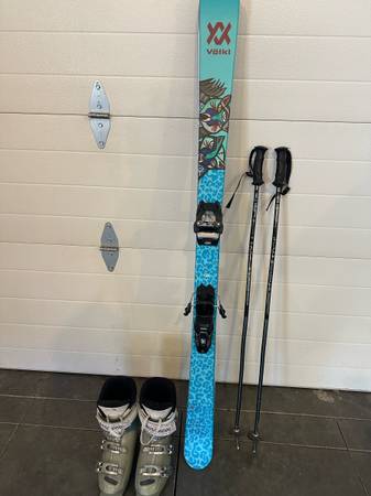 Full set of ski gear for your kid. My child grew out of them too quick so skis and binding probably have 5 times on them. Boots are used and poles were new but used. Bindijngs and skis were $200...