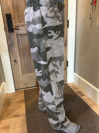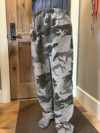 Men's Size XL WFS Polar Fleece Pants Burly Camo pattern - soft blend of greens and gray/brown Very warm and very comfortable! Loose fitting Excellent, like new condition