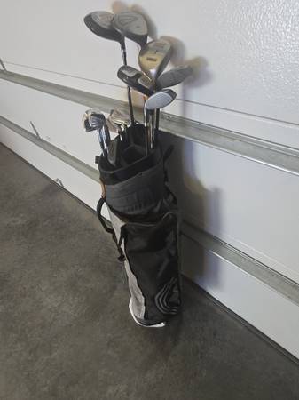 See picture,14 clubs total,all clubs show little head,shaft wear,grips are good, 3 thur wedge vintage hard to find HARD TO FIND Hogan irons with orginal manufacturer labels,nlce driver,1,3,5,7,9 woods and putter, great starter set SEE PICTURE, comes with dozen good balls and nice fold up pull-push cart, see pictures,call