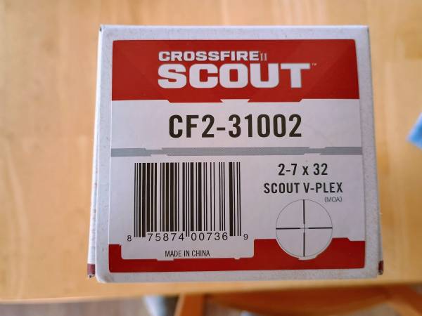 Vortex Crossfire II Scout 2-7x32 scope lightly used. Emphasis on the Scout, it is made for Scout type rifles with long eye-relief. Doesn't fit my application. Cash or Venmo only.