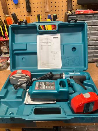 Includes a battery charger, two batteries, and case. You pick up.
