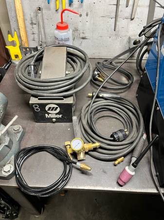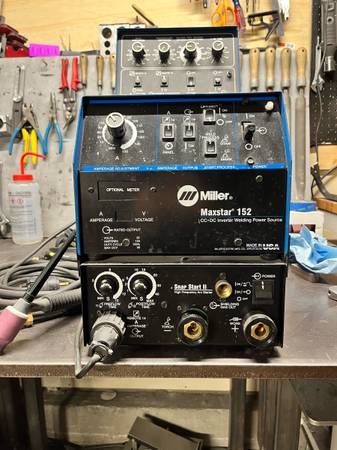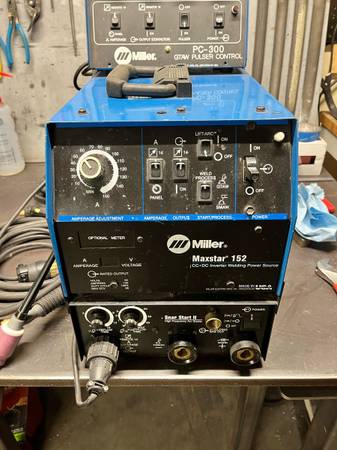 Miller Maxstar 152 CC/DC Tig/Stick machine 220v. I don’t know if you’ll find one in better shape than this one. Comes with the Miller Snap Start II, the Miller PC-300 pulse controller, solid foot pedal, upgraded torch (with some consumables), and a gas regulator.