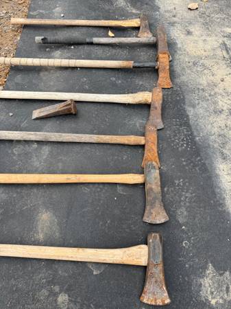 Seven wood splitting mauls with handles. All in working condition, although some could use work. And on splitting wedge. $35 for all Please leave a voice message at 406-5ate7-4:-99.2 This phone...