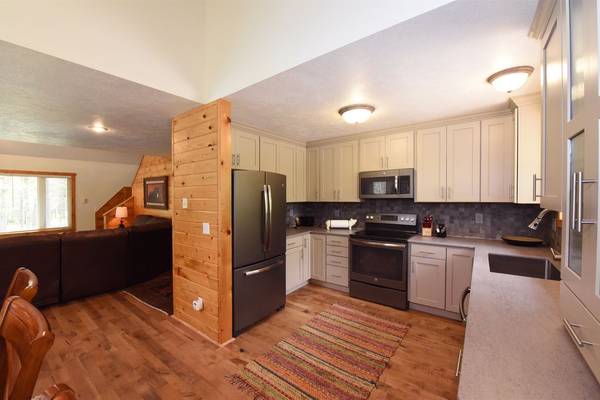 The spacious kitchen is fully stocked to make your stay easy and stress free. All you need to do is bring the tasty ingredients to make a delightful home cooked meal, in a gorgeous cabin.