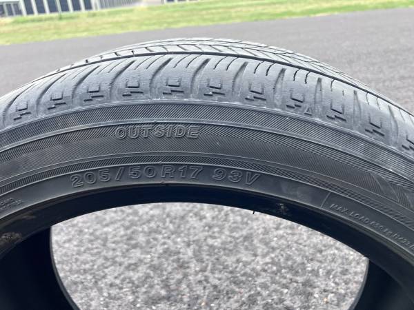 Size 205/50R17. From an Impreza outback sport. These are 17 inch tires, NOT 18. I've had them a few years but they have worn very well, and have very good traction. These are very high quality tires, and they still have excellent traction, but they are just used. They should last 1-2 seasons, as they still have some tread. Please note that these do not come with wheels. They