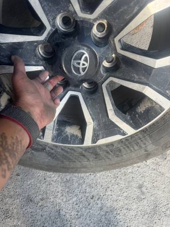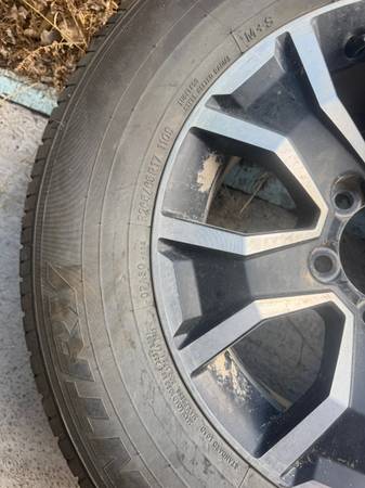 Rims and tires came from my 2022 Tacoma. Tires have some life left on them. Rims are in great shape- there is one wheel center dust cap missing.